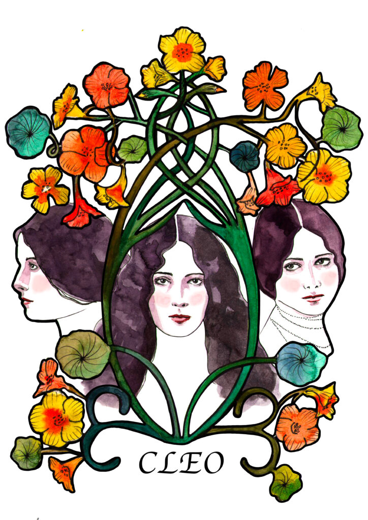 Serie de tres retratos dedicados a la bailarina francesa Cleo de Mérode (1875–1966), ícono de la Belle Époque y una de las primeras mujeres en dominar su propia imagen pública. En estas obras, su rostro aparece como símbolo de elegancia y misterio: una belleza contenida, suspendida entre inocencia y deseo. Representa la musa que se sabe mirada, pero que también se mira a sí misma.