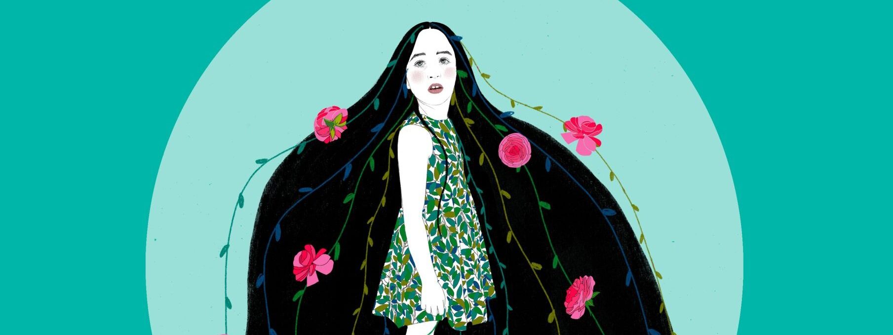 A girl stands, roses sprouting from her hair. Language turns to nourishment. A mother’s words—and the words she learns to tell herself—become living water.